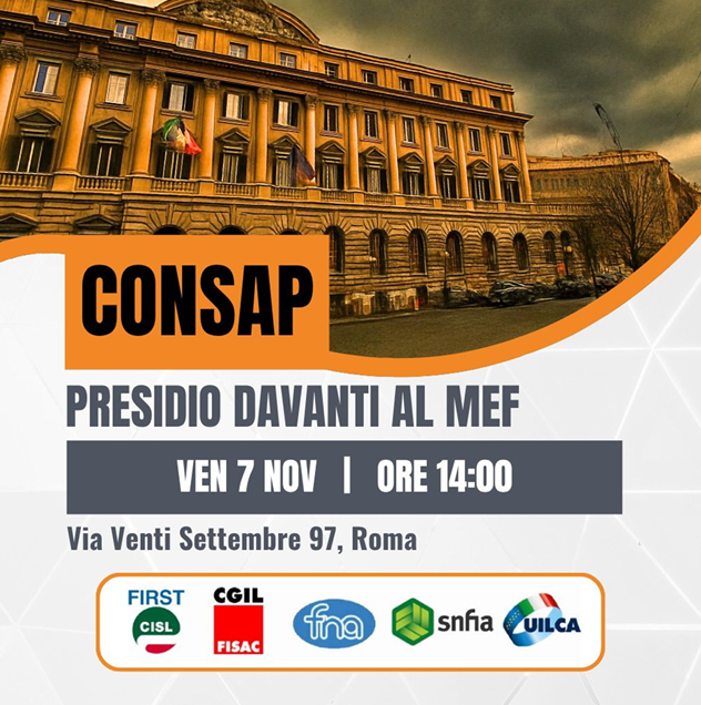Per questo, domani saremo in piazza alle ore 14:00 per chiedere al Ministro Giancarlo Giorgetti di intervenire affinché il MEF - azionista unico di Consap - affronti una situazione divenuta ormai insostenibile.